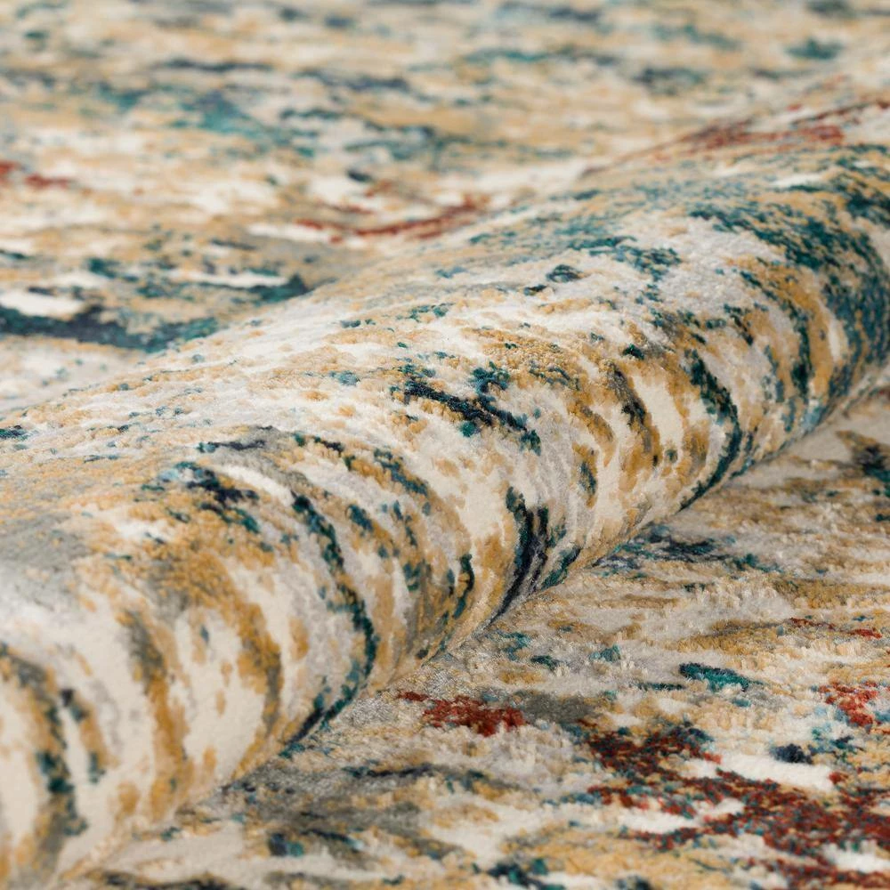 Addison Rugs Gentry Collection features a high-low textured plush pile construction. This value driven area rug features a bi-level combination of polypropylene with polyester yarns and cotton backing make this an extremely soft yet durable rug. This multicolored abstract watercolor pattern and is great for transitional to modern spaces. It is available in 6 size options. The Gentry, easy care rugs are very family and pet friendly. Vacuum rugs regularly on highest setting. Do not pull loose yarns; trim with scissors. Blot spills immediately and spot clean with mild soap and water. Power woven in Egypt.